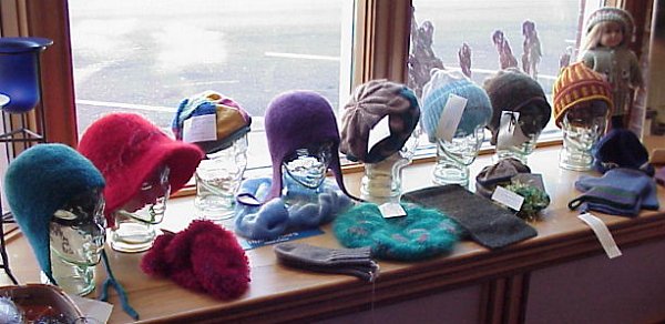 The past 7 years that The Dining Room at 209 Main has been in business, our goal has been to exhibit textiles. The exhibits change about every 3-4 months. Our goal in this exhibit is to showcase some of the knitters (there are so many - the Madison (WI) Area Knitters' Guild has 260 members) in the Madison/Monticello Wisconsin area. We hope to invite more knitters in the future to share their work.